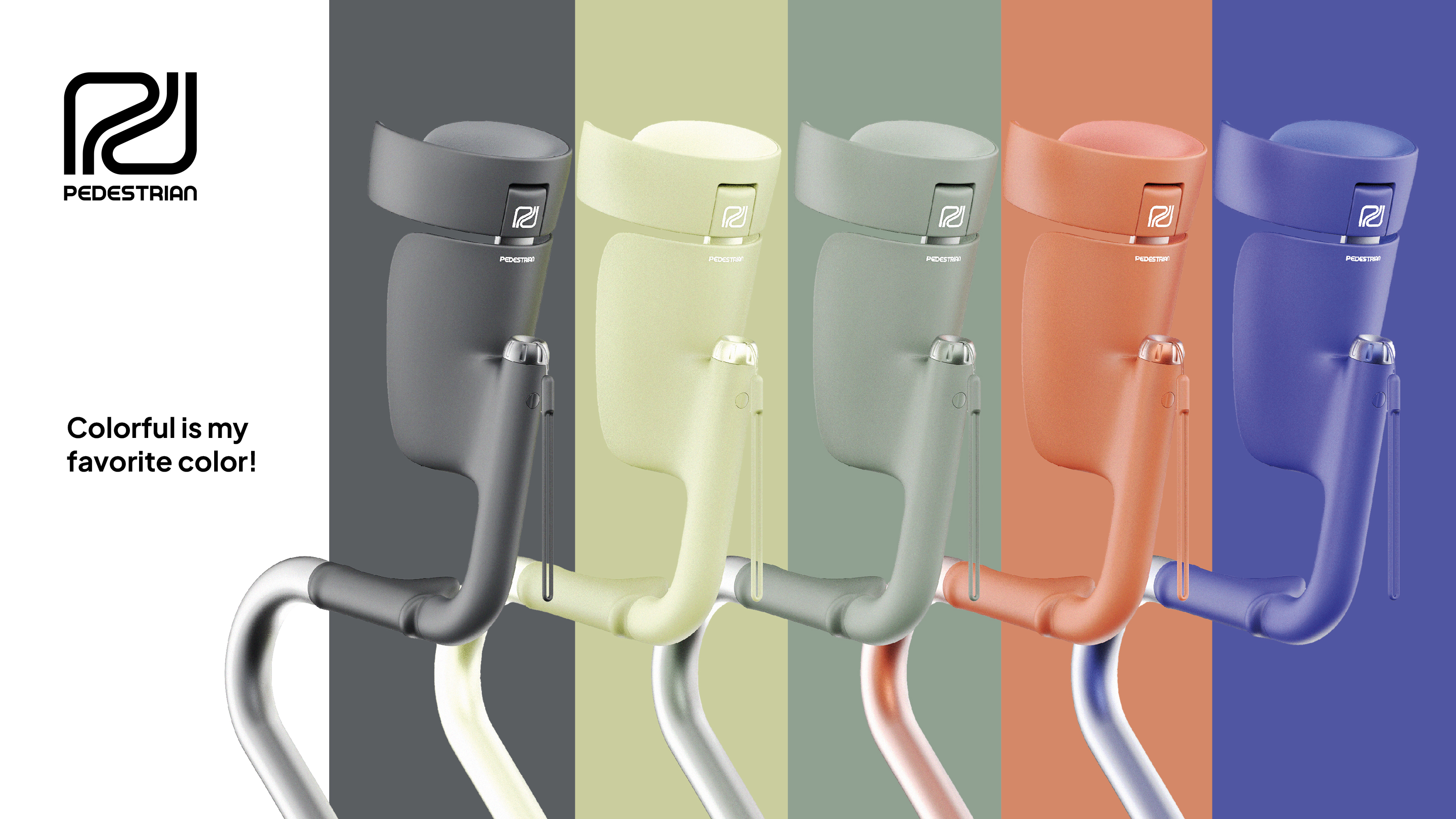 Unlike conventional walking aids, Pedestrian puts people in the foreground rather than their limitations. In its design, the technoid and strictly medical character that many walking aids have was consciously avoided. Soft forms emphasize the ergonomic, more human shape of Pedestrian, while a refined color spectrum encourages a self-confident approach to the limitation.